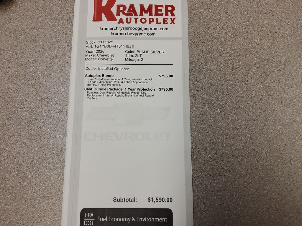 See what's behind you with the back up camera on it. Bluetooth® technology is built into this unit, keeping your hands on the steering wheel and your focus on the road. You'll never again be lost in a crowded city or a country region with the navigation system on this unit. The leather seats in the Chevrolet Corvette are a must for buyers looking for comfort, durability, and style. Never get into a cold vehicle again with the remote start feature on this Chevrolet Corvette. This 2026 Chevrolet Corvette features a high end BOSE stereo system. Keep your hands warm all winter with a heated steering wheel in the Chevrolet Corvette . This model has a V8, 6.2L high output engine. The vehicle gleams with an elegant silver clear coated finish. Keep safely connected while in this unit with OnStar. You may enjoy services like Automatic Crash Response, Navigation, Roadside Assistance and Hands-Free Calling.