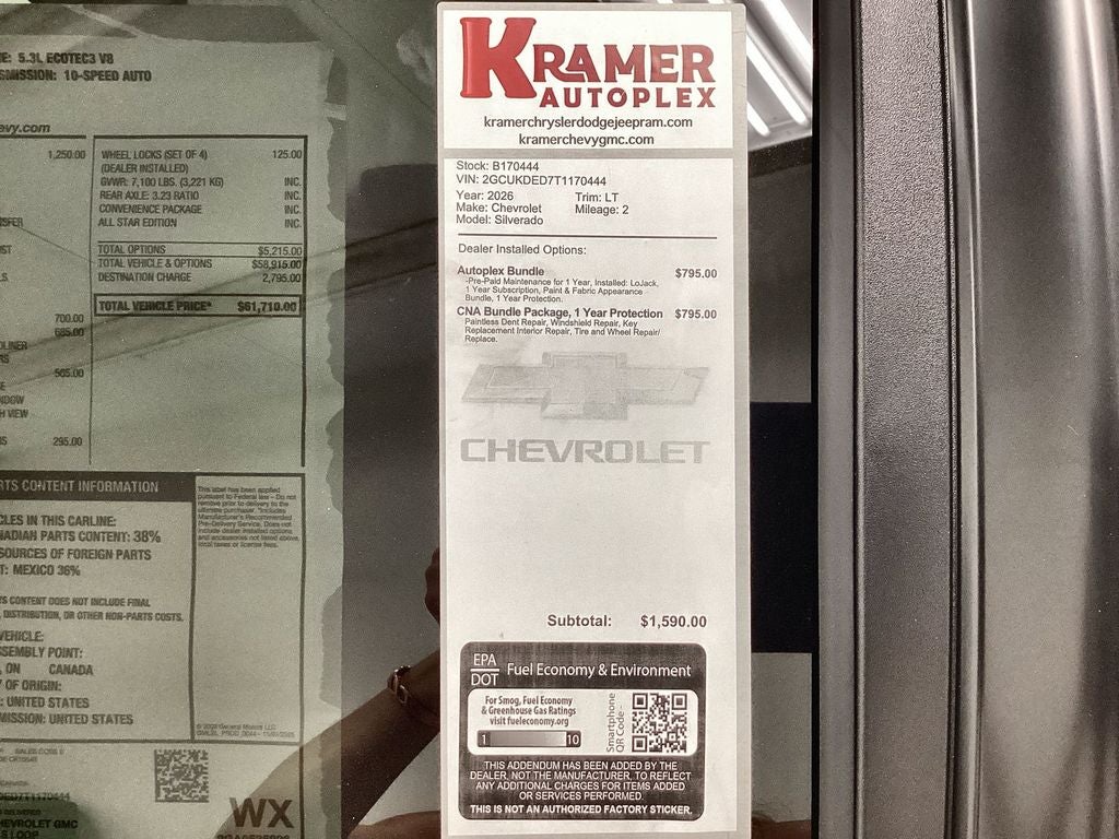 Never get into a cold vehicle again with the remote start feature on the Chevrolet Silverado. This model is equipped with the latest generation of XM/Sirius Radio. The steering wheel audio controls on the vehicle keep the volume and station within easy reach. This 2026 Chevrolet Silverado 1500 offers Apple CarPlay for seamless connectivity. The Chevrolet Silverado's Lane Departure Warning keeps you safe by alerting you when you drift from your lane. It offers Android Auto for seamless smartphone integration. An off-road package is equipped on this model. Lane Keep Assist in the Chevrolet Silverado helps maintain safe driving by gently steering to stay within the lane. See what's behind you with the back up camera on this model. This 2026 Chevrolet Silverado 1500 features a hands-free Bluetooth® phone system. The vehicle offers Automatic Climate Control for personalized comfort. Keep your hands warm all winter with a heated steering wheel in the Chevrolet Silverado .