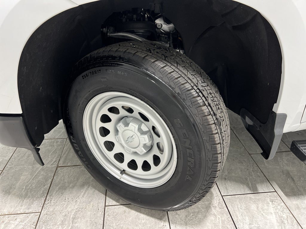 - Preferred Equipment Group 1WT: HD Rear Vision Camera; Bluetooth® For Phone; Black (semi-Gloss) Front Bumper; 17" X 8" Ultra Silver Painted Steel Wheels; Black (semi-Gloss) Rear Bumper; 3.5" Monochromatic Display Driver Info Center; Rubberized-Vinyl Floor Covering; Standard Tailgate; Tire Pressure Monitoring System; 40/20/40 Front Split Bench Seat; Teen Driver; 255/70R17 AS BW Tires; OnStar Services Capable; Power Front Windows with Passenger Express Down; Remote Keyless Entry; 4-Way Manual Driver Seat Adjuster; Inside Rearview Mirror with Tilt; Solar Absorbing Tinted Glass; SiriusXM Delete; Electronic Cruise Control; Chevy Safety Assist; Manual Tailgate Function with No EZ Lift; Manual Tilt Wheel Steering Column; Single-Speed Transfer Case; Power Front Windows with Driver Express Up/down; Front Frame-Mounted Black Recovery Hooks; Locking Tailgate; Heated Power-Adjustable Outside Mirrors
