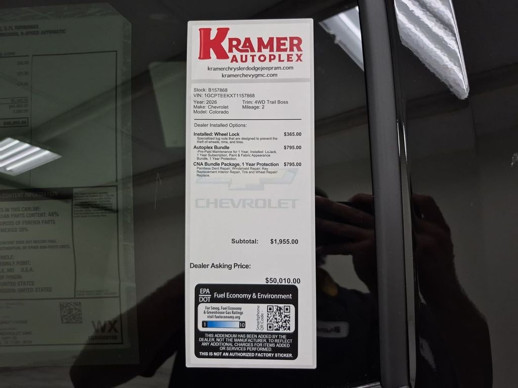 The Chevrolet Colorado offers Android Auto for seamless smartphone integration. This model offers Apple CarPlay for seamless connectivity. It features a hands-free Bluetooth® phone system. See what's behind you with the back up camera on this unit. This 2026 Chevrolet Colorado offers Automatic Climate Control for personalized comfort. Lane Keep Assist in this unit helps maintain safe driving by gently steering to stay within the lane. The rear parking assist technology on this Chevrolet Colorado will put you at ease when reversing. The system alerts you as you get closer to an obstruction. It's Lane Departure Warning keeps you safe by alerting you when you drift from your lane. You'll never again be lost in a crowded city or a country region with the navigation system on this Chevrolet Colorado. This Chevrolet Colorado has a 4 Cyl, 2.7L high output engine. It is outfitted with an OnStar communication system. Maintaining a stable interior temperature in this 2026 Chevrolet Colorado is easy with the climate control system.