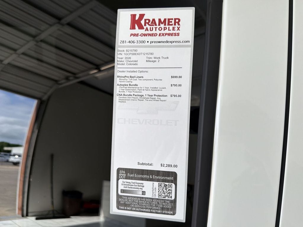 2026 Chevrolet Colorado 2WD Work Truck — Best Price in Livingston, TX Looking for a dependable midsize truck in Livingston, TX? This 2026 Chevrolet Colorado 2WD Work Truck combines capability and efficiency with a 4-cylinder, 2.7L gasoline engine and rear-wheel drive, delivering a smooth balance of power and fuel economy for daily work or weekend projects. This Chevrolet Colorado is equipped with modern connectivity features including Android Auto and Apple CarPlay, plus Hands Free Bluetooth® for safe, convenient calls and audio streaming on the go. Safety and parking are simplified with a Back-Up Camera and Rear Parking Sensors, giving you added confidence when maneuvering in tight job sites or busy parking lots. The Work Truck trim focuses on functionality: durable interior surfaces, practical storage, and user-friendly controls that make this vehicle an excellent choice for contractors, fleet buyers, or anyone wanting a rugged, efficient truck. Located in Livingston, TX, this Chevrolet Colorado 2WD Work Truck is competitively priced and advertised as the best price in the area — a smart purchase for value-focused buyers who don't want to compromise on features. Contact us to schedule a test drive, verify availability, and lock in this outstanding value on a versatile, fuel-efficient midsize truck. Act fast — quality Chevrolet Colorado inventory moves quickly.
