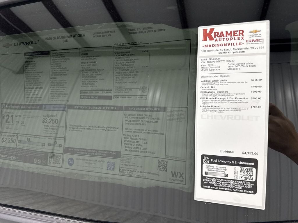 2026 Chevrolet Colorado 2WD Work Truck — ready to tackle jobs in Madisonville, TX, this rugged mid-size pickup pairs a potent 4-cylinder, 2.7L gasoline engine with rear-wheel drive for dependable performance, excellent fuel economy, and confident hauling around town or on the highway. Built for professionals and weekend warriors alike, this Chevrolet Colorado Work Truck delivers capability without excess, featuring a user-friendly navigation system that keeps you on course for deliveries or job sites. Stay connected and productive with Apple CarPlay and hands-free Bluetooth®, making calls, messages, and music seamless while you focus on the road. Safety features include a Back-Up Camera for precise maneuvering in tight jobsite conditions and Lane Departure Warning to help prevent unintended drift during long drives. The practical, no-nonsense interior is designed for comfort and durability, with intuitive controls and sturdy materials that stand up to daily use. Located in Madisonville, TX, this Chevrolet Colorado 2WD Work Truck is offered at the best price — an unbeatable value for businesses and individuals seeking a capable, modern pickup without breaking the budget. Whether you need a reliable workhorse for hauling gear, towing small loads, or navigating city streets, this Chevrolet Colorado delivers the performance, technology, and safety features you want. Contact us today to schedule a test drive and secure the best deal on this 2026 Chevrolet Colorado in Madisonville, TX.