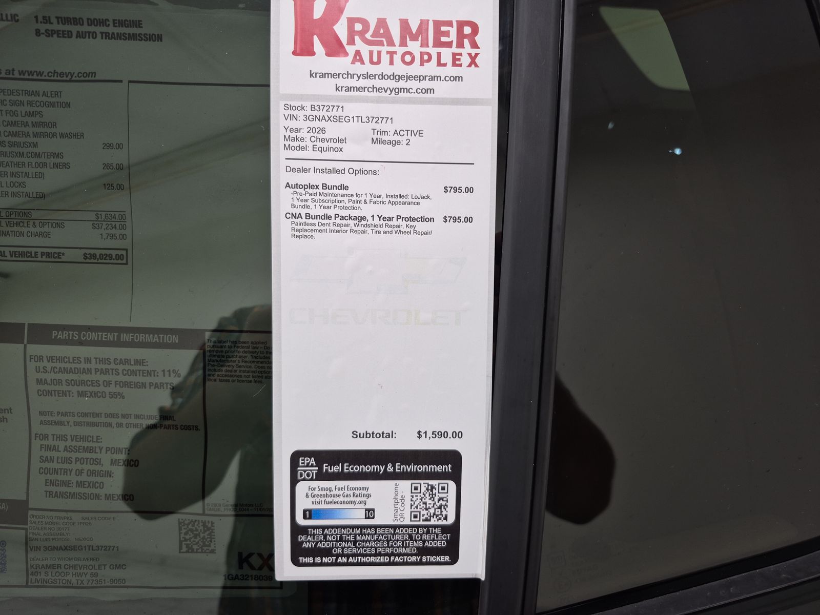 Discover the 2026 Chevrolet Equinox AWD ACTIV, now available in Livingston, TX — a stylish, capable compact SUV engineered for confident driving in any condition. Powered by a responsive 4-cylinder 1.5L gasoline engine and advanced all-wheel drive, this Chevrolet Equinox delivers a balanced blend of fuel efficiency, performance, and traction for Texas roads and beyond. The ACTIV trim adds rugged styling cues and practical features that enhance daily usability. Inside, enjoy modern comfort with automatic climate control and a heated steering wheel that make every drive enjoyable year-round. Stay connected and safe with hands-free Bluetooth® for calls and music integration, plus remote start for convenient pre-conditioning. Advanced driver assists include Lane Departure Warning to help maintain lane position and increase confidence on longer commutes. This Chevrolet Equinox offers refined interior materials, versatile cargo space, and driver-focused technology that make it an ideal choice for families, commuters, and active lifestyles. Whether navigating city streets or weekend escapes, the AWD system and efficient engine provide dependable performance. Located in Livingston, TX, this 2026 Chevrolet Equinox AWD ACTIV is priced to move and backed by value — we offer the best price to make your purchase straightforward and affordable. Contact us today to schedule a test drive and experience this well-equipped Chevrolet Equinox for yourself. Competitive pricing and exceptional capability await.