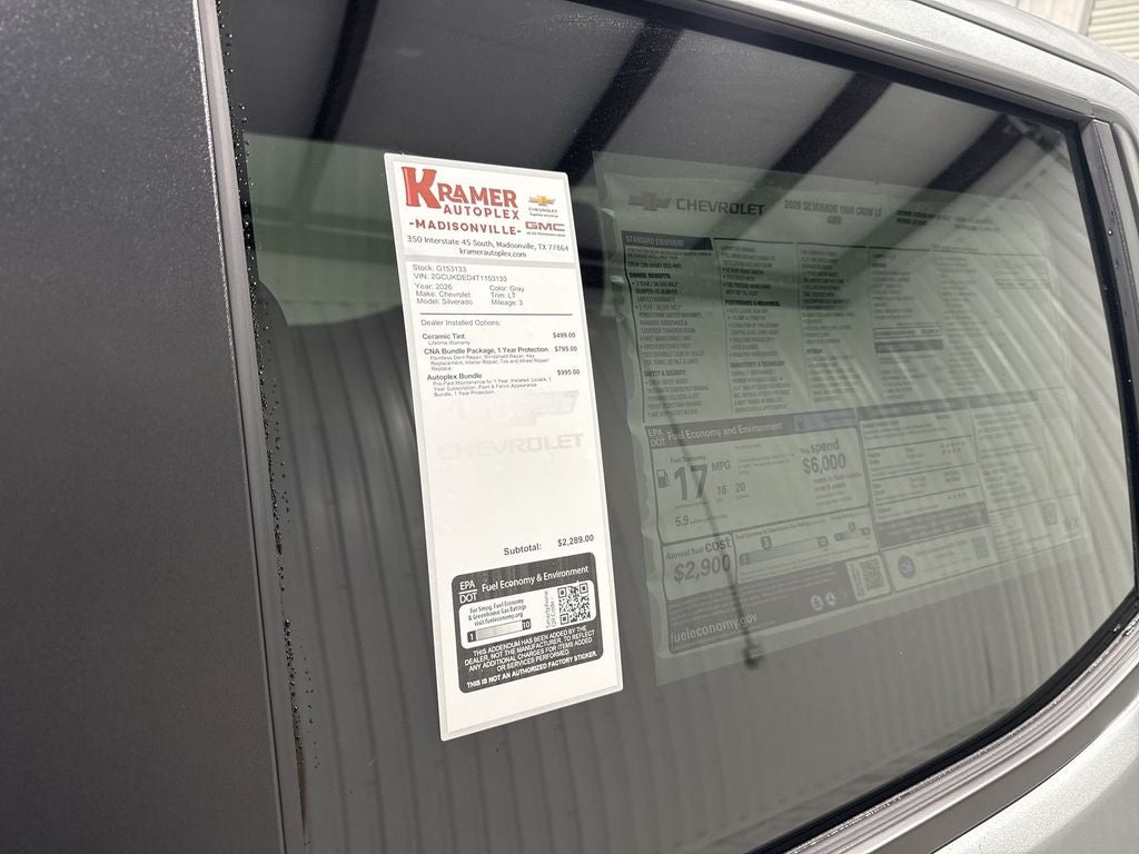 Discover the 2026 Chevrolet Silverado 1500 LT 4WD, a rugged and refined full-size pickup located in Madisonville, TX. Powered by a dependable V8 5.3L gasoline engine, this Chevrolet Silverado delivers impressive towing capability, confident acceleration, and the durability you expect from a Chevy truck. The 4WD system ensures traction and control whether you're navigating wet roads, gravel trails, or job site terrain. Inside, the cabin blends comfort and technology. Stay connected with Apple CarPlay and hands-free Bluetooth®, making navigation and media seamless on every drive. The back-up camera enhances visibility for safer reversing and parking in tight spaces. Enjoy added convenience with remote start for quick climate control before you step in, and a heated steering wheel for warmth and comfort during cooler mornings. This LT trim balances value and features, offering practical amenities without unnecessary frills. The exterior presents a bold, modern design that complements its capable performance and utility bed for hauling gear, supplies, or recreational equipment. Located in Madisonville, TX, this Chevrolet Silverado 1500 LT is competitively priced and advertised as the best price available—an exceptional opportunity for buyers seeking power, comfort, and technology in one package. Contact us today to schedule a test drive and experience the 2026 Chevrolet Silverado 1500 LT 4WD with the V8 5.3L firsthand. Don't miss out on this best-priced pickup.
