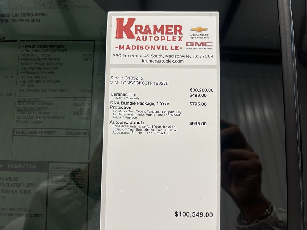 Experience the ultimate combination of power, luxury, and capability with this 2026 Chevrolet Suburban High Country 4WD, now available in Madisonville, TX. Powered by a smooth and efficient 6-cylinder 3.0L diesel engine, this Chevrolet Suburban delivers exceptional towing performance and long-range fuel economy while maintaining a refined ride for every journey. The High Country trim surrounds you in premium leather seats and advanced comfort features, making long drives a pleasure for driver and passengers alike. This Chevrolet Suburban is loaded with modern technology to keep you connected and safe on the road: integrated navigation guides your trips with confidence, hands-free Bluetooth® keeps calls and music seamless, and Remote Start brings instant comfort on hot Texas mornings or chilly evenings. Lane Departure Warning adds a critical layer of safety for highway travel, helping you stay aware and protected on long hauls. With 4WD capability, this Chevrolet Suburban is ready for rough roads, family adventures, and heavy-duty tasks while retaining High Country-level refinement. Located in Madisonville, TX, this 2026 Chevrolet Suburban High Country offers the best price in the area — an unbeatable value for a premium diesel SUV with top-tier features and capability. Act now to secure this exceptional Chevrolet Suburban that combines diesel efficiency, luxurious comfort, and confident 4WD performance — the smart choice for drivers who want power, safety, and prestige at the best price in Madisonville.