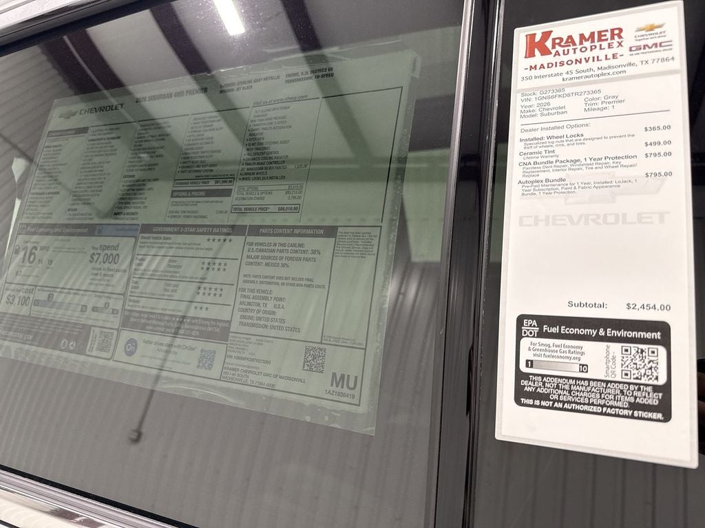 2026 Chevrolet Suburban Premier 4WD — V8 5.3L Gasoline, located in Madisonville TX, offers premium capability and comfort at the best price. This Chevrolet Suburban Premier pairs a robust 5.3L V8 gasoline engine with four-wheel drive for confident towing, highway passing, and composed handling on varied road surfaces. The exterior presence and spacious interior make it an ideal choice for families, executives, and anyone needing versatile cargo and passenger capacity. Inside, rich leather seats provide first-class comfort across three roomy rows, while a heated steering wheel keeps hands warm during cooler drives. Advanced driver aids include Lane Departure Warning and Lane Keep Assist to enhance safety and reduce driver fatigue on long trips. Seamless smartphone integration is available with Android Auto, keeping navigation, music, and calls accessible and intuitive. This Chevrolet Suburban Premier features generous cargo space, thoughtfully designed storage, and upscale finishes that elevate daily driving and weekend adventures alike. Whether towing a trailer or carrying a full passenger load, the V8 powertrain and 4WD drivetrain deliver performance and confidence. Located in Madisonville TX, this vehicle is competitively priced and advertised as the best price to ensure exceptional value. Schedule a test drive today to experience the comfort, capability, and advanced features of this 2026 Chevrolet Suburban Premier in person.