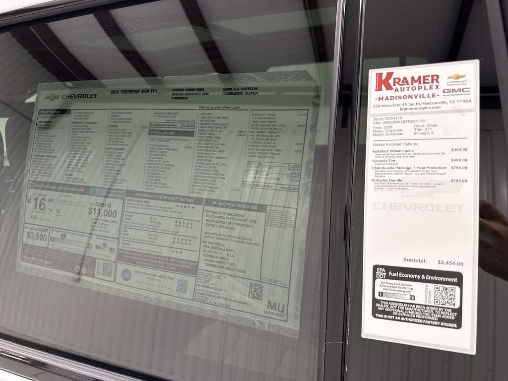 Ready to own the road in Madisonville, TX? This 2026 Chevrolet Suburban Z71 4WD with the powerhouse 6.2L V8 delivers commanding performance, rugged capability, and premium comfort — and it's priced to sell as the best deal in the area. With Z71 suspension and 4WD confidence, this Chevrolet Suburban is built for weekend adventures, towing duties, and daily driving with equal ease. Inside, premium leather seats offer first-class comfort for every passenger, while an advanced navigation system keeps you on course wherever you go. Stay connected and entertained with Hands Free Bluetooth® and Android Auto integration, providing seamless access to calls, music, and maps. Safety and convenience are boosted by a Back-Up Camera for precise parking and trailer hookups. This Chevrolet Suburban combines utility and refinement: spacious third-row seating, generous cargo capacity, and smart tech features make it ideal for families, outdoor enthusiasts, and professionals who need capability without sacrificing comfort. The bold exterior, signature Z71 styling, and the throaty V8 note announce capability at every turn. Located in Madisonville, TX, this 2026 Chevrolet Suburban Z71 4WD 6.2L V8 represents exceptional value with the best price available locally. Ready for test drives and immediate delivery — don't miss your chance to own a true full-size SUV that blends performance, technology, and comfort in one impressive package. Contact us today to schedule your appointment.