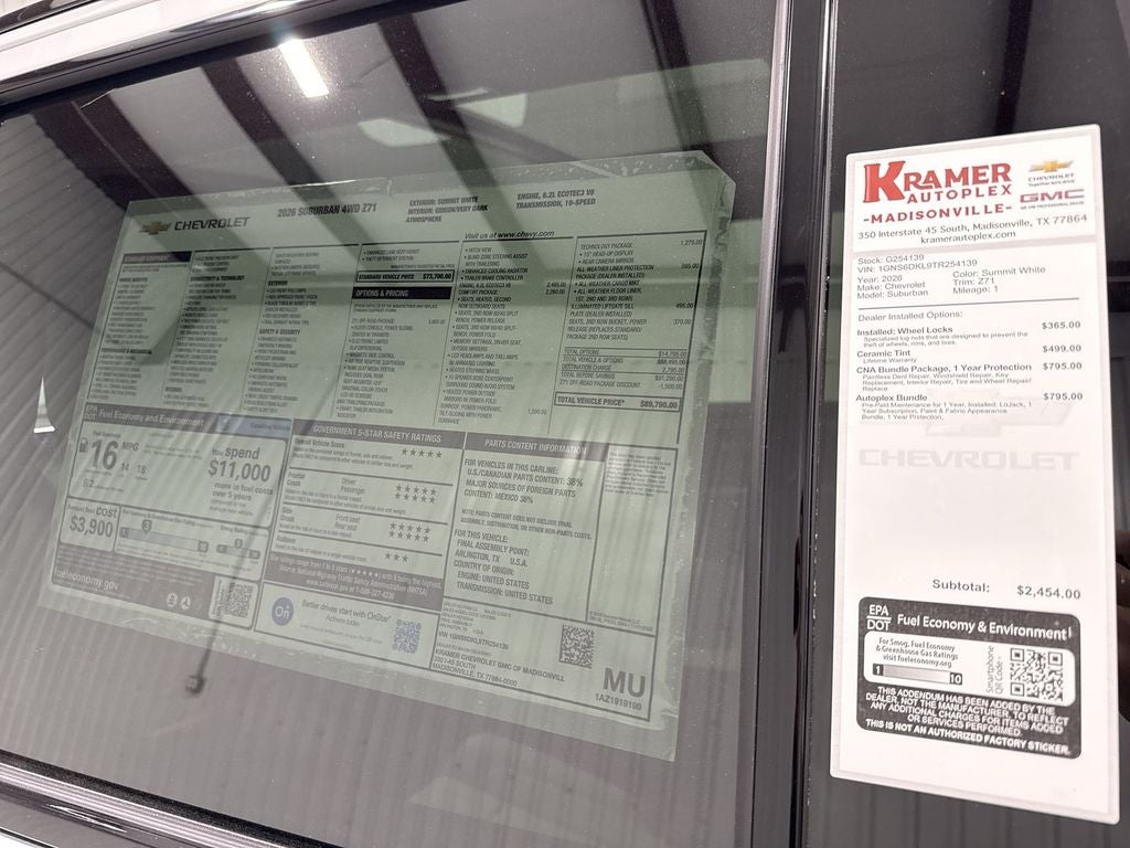 The leather seats in it are a must for buyers looking for comfort, durability, and style. Start this model from inside with remote start. The installed navigation system will keep you on the right path. Protect it from unwanted accidents with a cutting edge backup camera system. This vehicle offers Apple CarPlay for seamless connectivity. This vehicle has automated speed control that adjusts to maintain a safe following distance, enhancing highway driving convenience. This Chevrolet Suburban offers Android Auto for seamless smartphone integration. Bluetooth® technology is built into it, keeping your hands on the steering wheel and your focus on the road. This 2026 Chevrolet Suburban 's Lane Departure Warning helps keep you in your lane. This unit stays safely in its lane with Lane Keep Assist. Load groceries and much more with ease into this Chevrolet Suburban thanks to the power liftgate. Maintaining a stable interior temperature in this unit is easy with the climate control system.