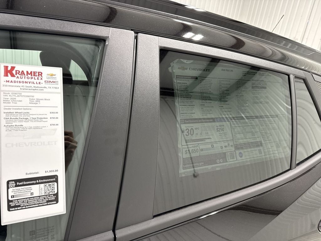 2026 Chevrolet Trax 2RS FWD — Best Price in Madisonville, TX Looking for a stylish, fuel-efficient crossover in Madisonville, TX? This 2026 Chevrolet Trax 2RS with a 3-cylinder 1.2L gasoline engine delivers impressive fuel economy, nimble handling, and bold 2RS styling. With front-wheel drive and modern safety tech, it's an excellent choice for daily commutes and weekend getaways. Key features include Lane Departure Warning and Lane Keep Assist to help maintain lane position, plus a Back-Up Camera for confident parking. Enjoy year-round comfort with Automatic Climate Control and the convenience of Remote Start for quick cabin preconditioning. The Chevrolet Trax 2RS pairs compact city-friendly dimensions with a surprisingly usable interior and advanced connectivity options. This Chevrolet Trax is competitively priced and advertised as the best price in Madisonville, TX — ideal for buyers seeking value without sacrificing features or style. Whether you're navigating city streets or cruising highways, the 2026 Chevrolet Trax 2RS offers a balanced mix of efficiency, technology, and safety. Contact us today to schedule a test drive and experience this Chevrolet Trax in person. Act now to secure the best price on this well-equipped compact crossover in Madisonville.