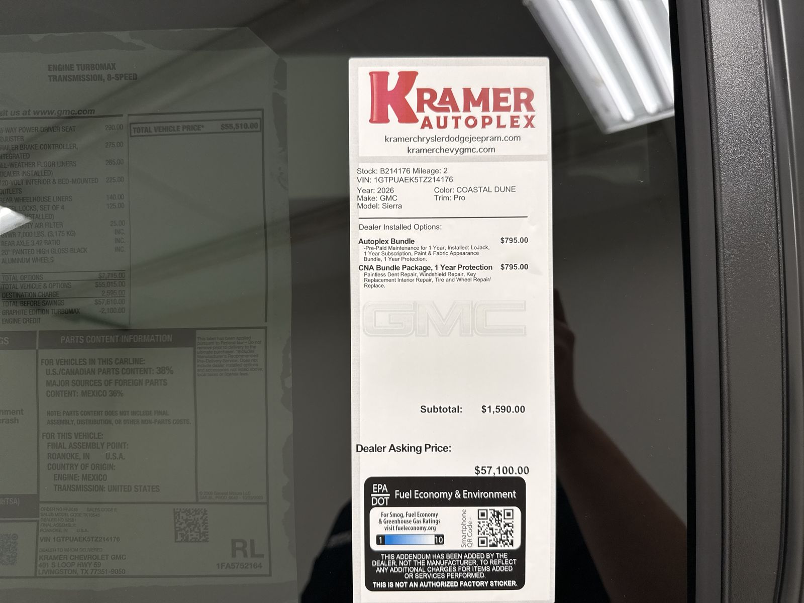 with XM/Sirus Satellite Radio you are no longer restricted by poor quality local radio stations while driving this model. Anywhere on the planet, you will have hundreds of digital stations to choose from. Lane Keep Assist in this GMC Sierra helps maintain safe driving by gently steering to stay within the lane. Start this GMC Sierra from inside with remote start. See what's behind you with the back up camera on the GMC Sierra. It features a hands-free Bluetooth® phone system. Apple CarPlay: Seamless smartphone integration for this vehicle - stay connected and entertained on the go! This 2026 GMC Sierra 1500's Lane Departure Warning keeps you safe by alerting you when you drift from your lane. This unit offers Android Auto for seamless smartphone integration. A trailer braking system is already installed on this vehicle. This GMC Sierra has four wheel drive capabilities. With the keyless entry system on this 1/2 ton pickup you can pop the trunk without dropping your bags from the store.