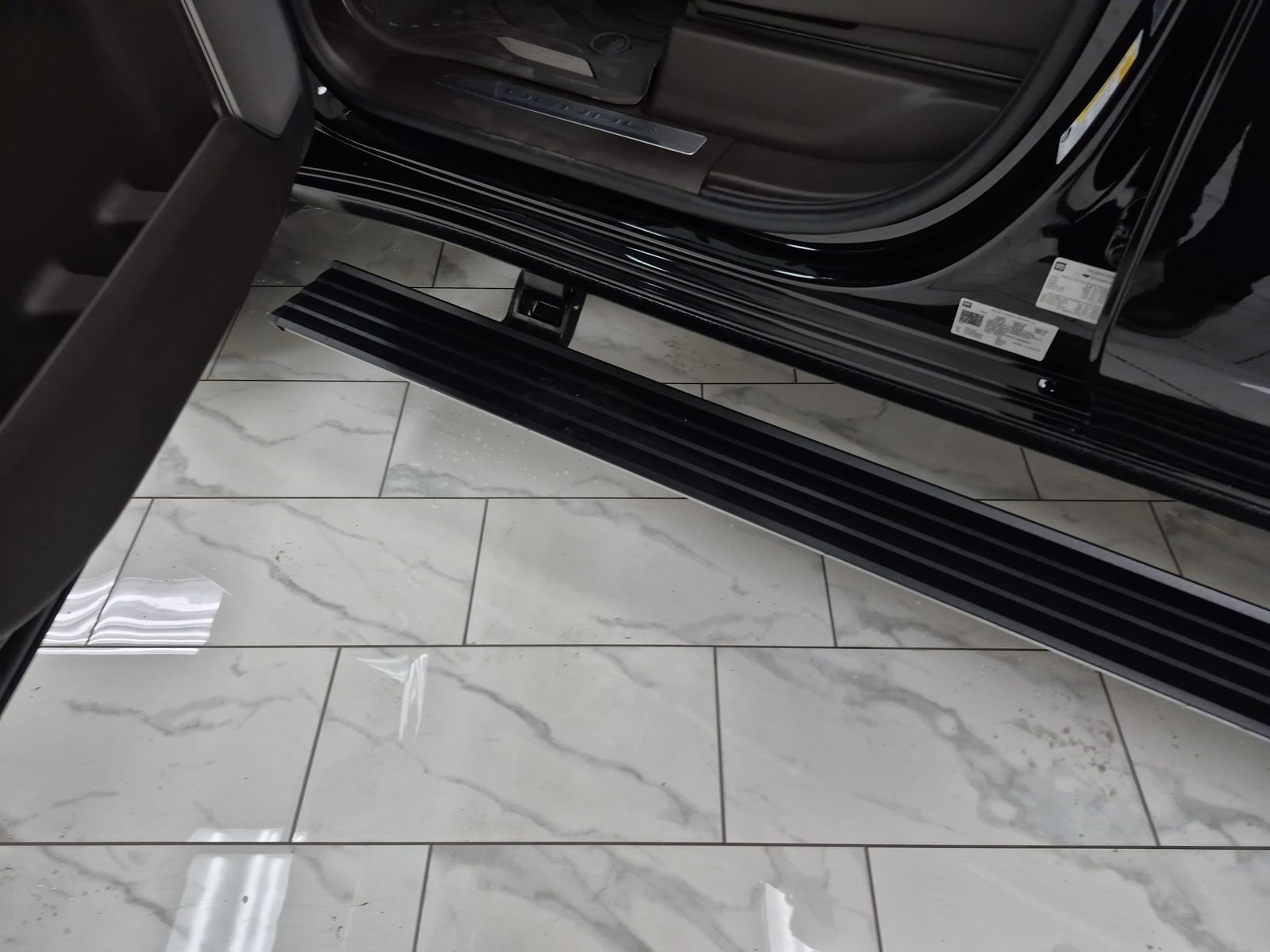 - Black textured step pads help provide secure footing