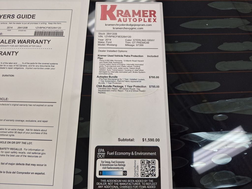 Start this Ford Mustang from inside with remote start. You'll never again be lost in a crowded city or a country region with the navigation system on it. This 2014 Ford Mustang has satellite radio capabilities. Protect the Ford Mustang from unwanted accidents with a cutting edge backup camera system. The leather seats in this model are a must for buyers looking for comfort, durability, and style. This small car keeps you comfortable with Auto Climate. This Ford Mustang features a hands-free Bluetooth® phone system. This 2014 Ford Mustang is rear wheel drive. Set the temperature exactly where you are most comfortable in this model. The fan speed and temperature will automatically adjust to maintain your preferred zone climate. This unit has a V8, 5.0L high output engine. This 2014 Ford Mustang emanates grace with its stylish gray exterior. Enjoy the tried and true gasoline engine in this Ford Mustang.