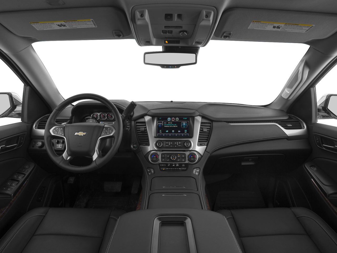 Sun. Entertainment and Destinations Package: Chevrolet MyLink Radio with Navigation/AM/FM Stereo; Rear Seat Blu-Ray/DVD Entertainment System; Power Sunroof. Max Trailering Package: 2-Speed Electronic Autotrac Active Transfer Case; 3.42 Rear Axle Ratio; Integrated Trailer Brake Controller. Preferred Equipment Group 1LZ: Memory Settings; Heated Leather Wrapped Steering Wheel; Perforated Leather-Appointed Seat Trim; Remote Vehicle Start; 3rd Row 60/40 Power Fold Split-Bench; Front and Rear Parking Assist; Floor Console; OnStar Basic Plan For 5 Years; 7. 300 lbs (3. 311 Kgs) GVWR; Chevrolet MyLink Radio with Navigation/AM/FM Stereo; Enhanced Driver Alert Package; Rear Cross-Traffic Alert; Fog Lamps; Driver Inboard and Front Passenger Airbags; Wireless Charging; Universal Home Remote; Color-Keyed Carpeting Floor Covering; Enhanced Driver Information Center; Heated 2nd Row Seats; Hands Free Power Liftgate; 1st and 2nd Row Color-Keyed Carpeted Floor Mats; Front Heated Reclining Bucket Seats; Power-Folding Heated Outside Mirrors; Side Blind Zone Alert with Lane Change