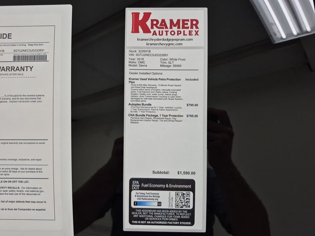 An off-road package is equipped on this vehicle. See what's behind you with the back up camera on the vehicle. This vehicle is a certified CARFAX 1-owner. You'll never again be lost in a crowded city or a country region with the navigation system on this 1/2 ton pickup. The leather seats in this GMC Sierra are a must for buyers looking for comfort, durability, and style. This GMC Sierra is pure luxury with a heated steering wheel. The vehicle features a high end BOSE stereo system. The GMC Sierra features steering wheel audio controls. Never get into a cold vehicle again with the remote start feature on the vehicle. This 2018 GMC Sierra 1500 keeps you comfortable with Auto Climate. This vehicle features a hands-free Bluetooth® phone system. The rear parking assist technology on this unit will put you at ease when reversing. The system alerts you as you get closer to an obstruction.