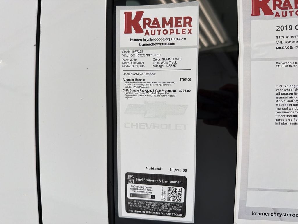 2019 Chevrolet Silverado 2500 Work Truck — 4WD, V8 6.0L — Livingston, TX This rugged 2019 Chevrolet Silverado 2500 Work Truck combines proven V8 6.0L gasoline performance with heavy-duty capability and four-wheel drive confidence, making it an ideal choice for contractors, fleet buyers, and anyone needing reliable towing and hauling. Equipped with Hands Free Bluetooth® and a Back-Up Camera, this Chevrolet Silverado adds practical convenience and enhanced safety for daily drives or jobsite maneuvers. The CARFAX 1-Owner history and CARFAX Clean Report provide added transparency and peace of mind for a trustworthy pre-owned purchase. Built to handle demanding tasks, the Chevrolet Silverado 2500 features a durable drivetrain and suspension tuned for payload and trailer hauling, while the 6.0L V8 delivers strong low-end torque for towing heavy loads. The spacious cabin and straightforward controls prioritize functionality, and modern connectivity keeps you linked on the road. Four-wheel drive ensures traction in adverse conditions around Livingston, TX, whether navigating rural work sites or local roads. Priced competitively, this Chevrolet Silverado represents the best price in the area for a well-maintained, single-owner 2500 Work Truck with these verified records. If you're searching for durability, utility, and reliability in a pre-owned heavy-duty pickup, this 2019 Chevrolet Silverado 2500 Work Truck is ready to work — contact us in Livingston, TX to schedule a test drive or request the CARFAX report.