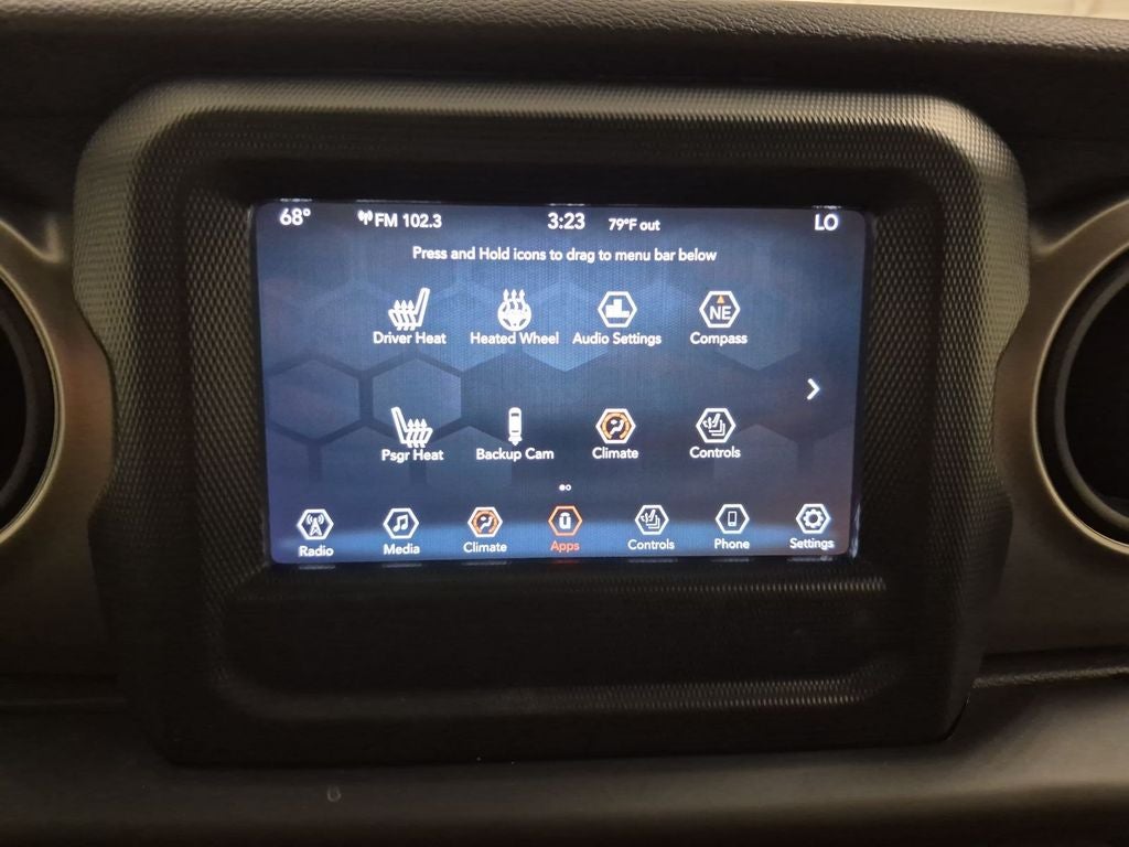 Cold Weather Group: Heated Front Seats; Heated Steering Wheel. Convenience Group: Remote Start System; Universal Garage Door Opener. Technology Group: Google Android Auto; Cluster 7.0" TFT Color Display; SiriusXM Satellite Radio; USB Host Flip; Integrated Center Stack Radio; 7.0" Touchscreen Display; Air Conditioning with Auto Temp Control; Uconnect 4 Radio with 7" Display; Apple CarPlay; Air Filtering; GPS Antenna Input. Quick Order Package 25W Willys (disc): Willys; Mold in Color Bumper with Gloss Black; Speed Sensitive Power Locks; Automatic Headlamps; Leather Wrapped Steering Wheel; Deep Tint Sunscreen Windows; Black Trail Rated Badge; 4-Wheel Drive Swing Gate Decal; Black Grille; MOPAR All-Weather Floor Mats; Willys Hood Decal; Rock Protection Sill Rails; LT255/75R17C Tires; Front 1-Touch Down Power Windows; Anti-Spin Differential Rear Axle; Power Heated Mirrors; Wrangler Decal; Matte Black Jeep Badge; Security Alarm; 17" X 7.5" Moab Black Aluminum Wheels; Remote Keyless Entry; Sun Visors with Illuminated Vanity Mirrors. LED Headlamp and Fog Lamp Group: Front LED Fog Lamps; LED Premium Reflector Headlamps. Quick Order Package 23W Willys: Willys; Mold in Color Bumper with Gloss Black; Speed Sensitive Power Locks; Automatic Headlamps; Leather Wrapped Steering Wheel; Deep Tint Sunscreen Windows; Black Trail Rated Badge; 4-Wheel Drive Swing Gate Decal; Black Grille; MOPAR All-Weather Floor Mats; Willys Hood Decal; Rock Protection Sill Rails; LT255/75R17C Tires; Front 1-Touch Down Power Windows; Anti-Spin Differential Rear Axle; Power Heated Mirrors; Wrangler Decal; Matte Black Jeep Badge; Security Alarm; 17" X 7.5" Moab Black Aluminum Wheels; Remote Keyless Entry; Sun Visors with Illuminated Vanity Mirrors. Black 3-Piece Hard Top. SiriusXM Satellite Radio. Black Clearcoat. Black Clearcoat. MOPAR All-Weather Floor Mats. **Equipment listed is based on original vehicle build and subject to change. Please confirm the accuracy of the included equipment by calling the dealer prior to purchase.**