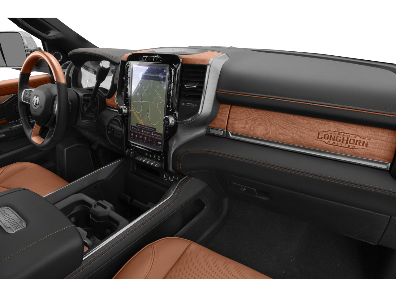 Cold Weather Group: Engine Block Heater; MOPAR Winter Front Grille Cover. Quick Order Package 21K Longhorn. Longhorn Level 1 Equipment Group: 17 Speaker Harman Kardon Premium Sound; Blind Spot and Cross Path Detection; Ramcharger Wireless Charging Pad; Power Deployable Running Boards; Uconnect Radio 12.0 with Navigation. Max Tow Package: Auto Level Rear Air Suspension; Center Stop Lamp with Cargo View Camera; MOPAR 30K Direct Mount 5th Wheel Hitch; 4.10 Axle Ratio; 5th Wheel/gooseneck Towing Prep Group. Safety Group: Adaptive Cruise Control with Stop; Digital Rearview Mirror; Adaptive Steering System; Full Speed Forward Collision Warning Plus; Lane Keep Assist. Towing Technology Group: Surround View Camera System; Blind Spot and Cross Path Detection; Trailer Reverse Guidance. DOT Certified Roadside Safety Kit: 3 Reflecting Triangles; Spare Fuses; DOT Fire Extinguisher; 2 Red Vinyl Flags. Dual Rear Wheels: Clearance Lamps; LT235/80R17E BSW AS Tires; Tire Pressure Monitoring Delete; 17" Steel Spare Wheel; Box and Rear Fender Clearance Lamps; 12.0" Dual Wheel Rear Axle; 6000# Front Axle with Hub Extension; 17" X 6.0" Premium Aluminum Wheels; 14. 000 lbs GVWR; Chrome Flat Cab-Length Side Steps; Rear Wheelhouse Liners. Auto Level Rear Air Suspension. MOPAR 30K Direct Mount 5th Wheel Hitch. Uconnect Radio 12.0 with Navigation. Blind Spot and Cross Path Detection. 5th Wheel/gooseneck Towing Prep Group. Trailer Tire Pressure Monitoring System. Center Stop Lamp with Cargo View Camera. Adaptive Steering System. 50 Gallon Fuel Tank. 4.10 Axle Ratio. Delmonico Red Pearlcoat. Chrome Tow Hooks. Clearance Lamps. **Equipment listed is based on original vehicle build and subject to change. Please confirm the accuracy of the included equipment by calling the dealer prior to purchase.**