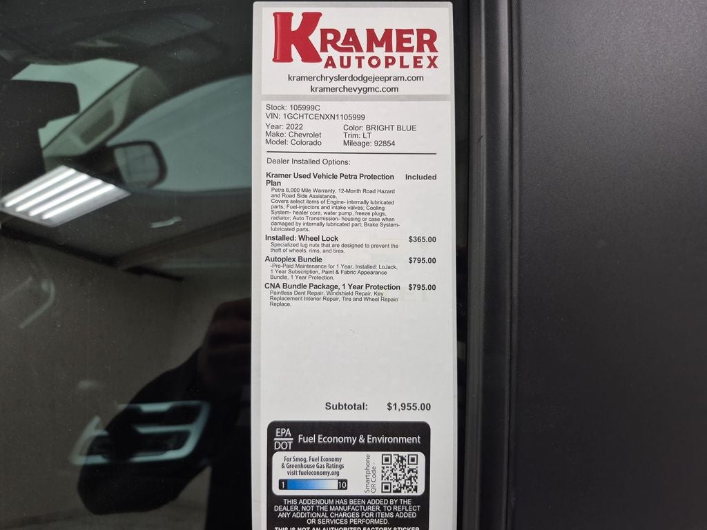 Bluetooth® technology is built into the vehicle, keeping your hands on the steering wheel and your focus on the road. Protect the vehicle from unwanted accidents with a cutting edge backup camera system. It has a clean CARFAX vehicle history report. Apple CarPlay: Seamless smartphone integration for it - stay connected and entertained on the go! This unit comes equipped with Android Auto for seamless smartphone integration on the road. Impresses the most discerning driver with the deep polished blue exterior on the Chevrolet Colorado. This small pickup has four wheel drive capabilities. Set the temperature exactly where you are most comfortable in this model. The fan speed and temperature will automatically adjust to maintain your preferred zone climate. This unit has a V6, 3.6L high output engine. The high efficiency automatic transmission shifts smoothly and allows you to relax while driving. This 2022 Chevrolet Colorado features cruise control for long trips.