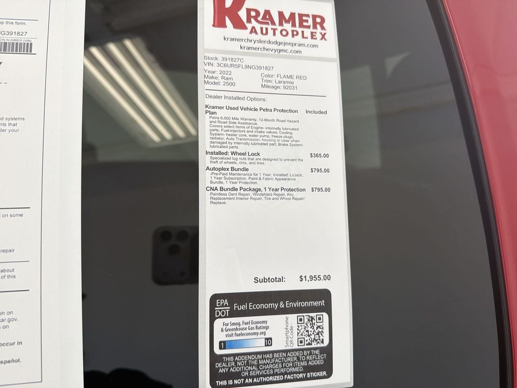This 3/4 ton pickup features a hands-free Bluetooth® phone system. This vehicle offers Android Auto for seamless smartphone integration. The state of the art park assist system will guide you easily into any spot. Start the vehicle from inside with remote start. This unit is pure luxury with a heated steering wheel. This model offers Apple CarPlay for seamless connectivity. Good News! This certified CARFAX 1-owner vehicle has only had one owner before you. This model offers Automatic Climate Control for personalized comfort. You'll never again be lost in a crowded city or a country region with the navigation system on it. The leather seats in this Ram 2500 are a must for buyers looking for comfort, durability, and style. Protect this unit from unwanted accidents with a cutting edge backup camera system. A trailer braking system is already installed on this 3/4 ton pickup. The vehicle has a 6 Cyl, 6.7L high output engine.