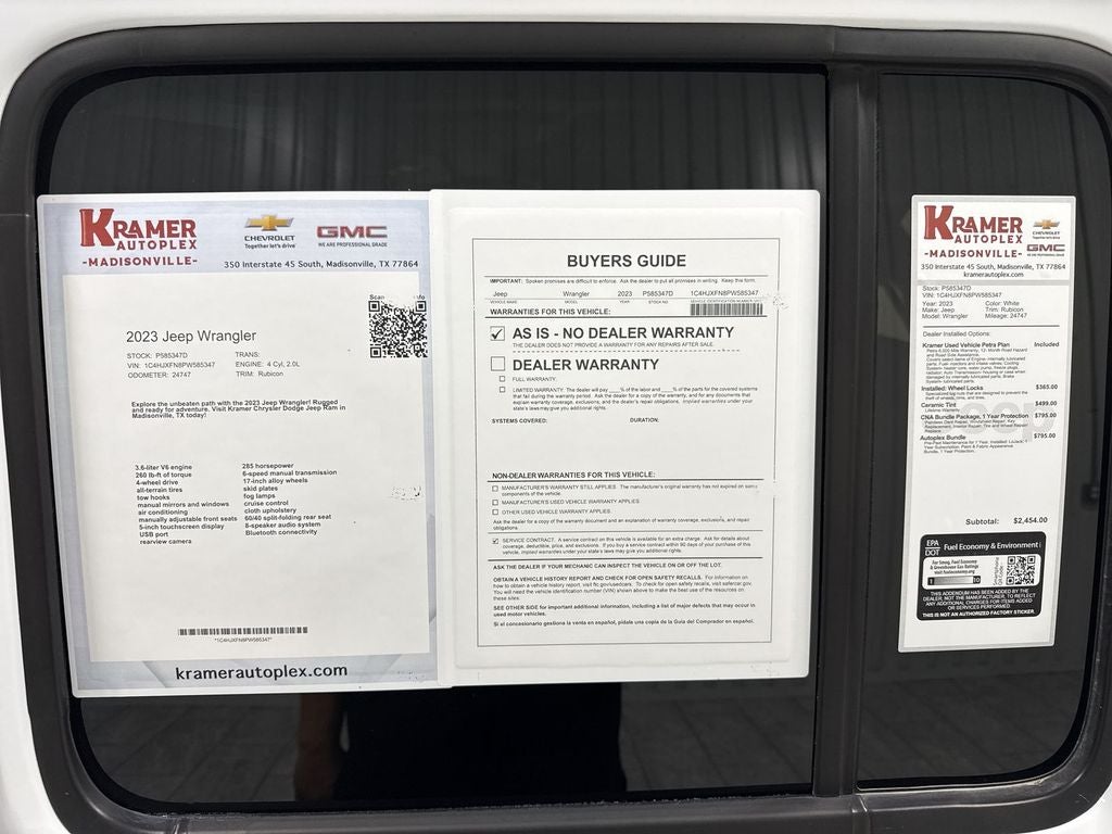 Ready for your next adventure, this 2023 Jeep Wrangler Rubicon is waiting in Madisonville, TX. With only 24,747 miles, this low-mileage 4WD icon pairs rugged capability with modern comfort. Powered by a fuel-efficient 2.0L 4-cylinder gasoline engine, it delivers responsive performance on highway runs and confident torque for off-road trails.