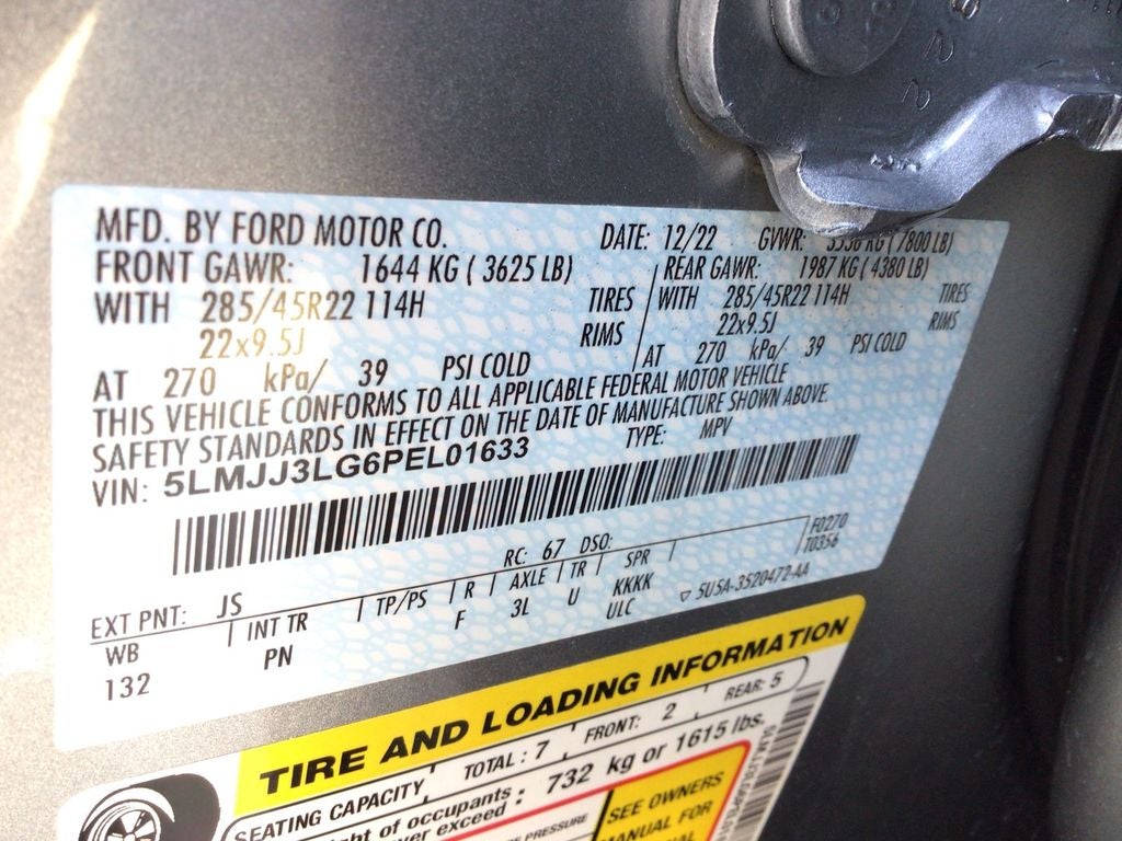 Equipment Group 201A: 22" Bright Machined Aluminum Wheels; Premium Leather Auto Heated/ventilated Perfect Position Seats; 3.73 Axle Ratio; 10-Speed Automatic Transmission with SelectShift; 3.5L Twin-Turbocharged V6 Engine; 285/45R22 AS BSW Tires; 7. 800 lbs GVWR. Luxury Package: Perfect Position Seats (30-Way) with Active Motion; Illuminated First and Second Row Seat Belts; Lincoln Lit Star in Grille; Revel Ultima 3D Audio System with 28 Speakers. Heavy-Duty Trailer Tow Package: Tiered Cargo Area Management System; 26mm Radiator; Trailer Brake Controller; Trailer Sway Control; Pro-Trailer Backup Assist 2.0; Class IV with 4-Pin and 7-Pin Connectors; Electronic Traction Assist; 2-Speed Transfer Case; Front Tow Hooks; Smart Trailer Tow. All-Weather Floor Liners with Carpet Floor Mats. **Equipment listed is based on original vehicle build and subject to change. Please confirm the accuracy of the included equipment by calling the dealer prior to purchase.**
