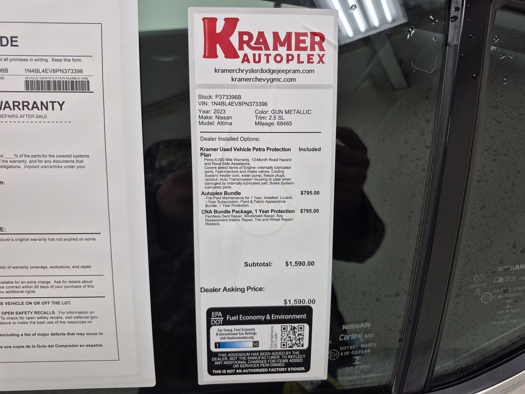 See what's behind you with the back up camera on it. The Nissan Altima offers Automatic Climate Control for personalized comfort. This 2023 Nissan Altima offers Android Auto for seamless smartphone integration. Our dealership has already run the CARFAX report and it is clean. A clean CARFAX is a great asset for resale value in the future. Never get into a cold vehicle again with the remote start feature on it. This mid-size car is equipped with the latest generation of XM/Sirius Radio. Engulf yourself with the crystal clear sound of a BOSE sound system in this vehicle. This unit is pure luxury with a heated steering wheel. You'll never again be lost in a crowded city or a country region with the navigation system on this 2023 Nissan Altima . This vehicle is a certified CARFAX 1-owner. This mid-size car features a hands-free Bluetooth® phone system. The Nissan Altima's Forward Collision Warning system alerts the driver to potential front-end collisions, enhancing safety.