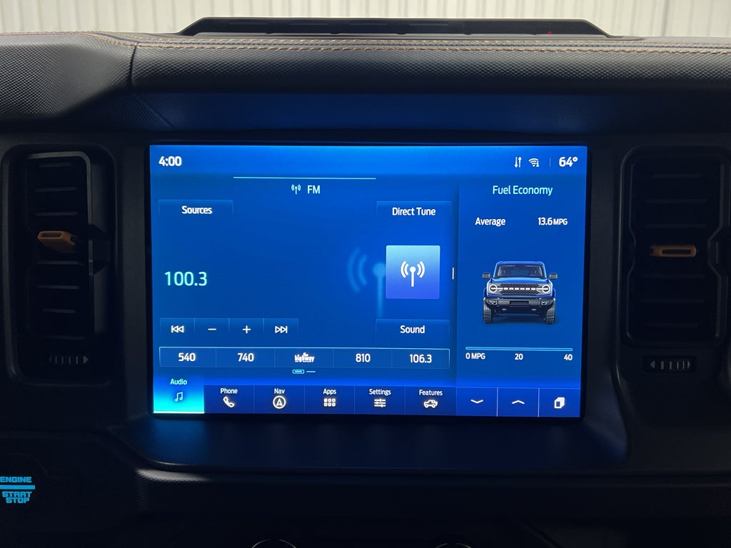 This Ford Bronco has a clean CARFAX vehicle history report. This Ford Bronco has automated speed control that adjusts to maintain a safe following distance, enhancing highway driving convenience. Apple CarPlay: Seamless smartphone integration for this unit - stay connected and entertained on the go! This model offers Automatic Climate Control for personalized comfort. The leather seats in it are a must for buyers looking for comfort, durability, and style. Never get into a cold vehicle again with the remote start feature on this model. This 1/2 ton suv is pure luxury with a heated steering wheel. The rear parking assist technology on this 1/2 ton suv will put you at ease when reversing. The system alerts you as you get closer to an obstruction. Bluetooth® technology is built into this unit, keeping your hands on the steering wheel and your focus on the road. Protect this unit from unwanted accidents with a cutting edge backup camera system.