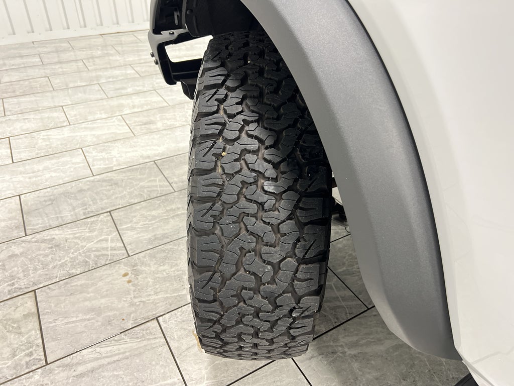 Equipment Group 334A High/lux Package: Rear Parking Sensors; Power Outlet - Back Side of Center Floor Console; Auto-Dimming Interior Rearview Mirror; Driver and Front Passenger Illuminated Sliding Visor Vanity Mirrors; Evasive Steering Assist; Heated Steering Wheel; Additional Sound Deadening; Information on Demand Panel; Wireless Charging Pad; Dual-Zone Electronic Automatic Temperature Control; Ambient Footwell Lighting; Remote Start System; 2-Door Intelligent Access with Lock/unlock; 17" Machined Carbonized Aluminum Wheels; Dual Smart Charging USB Ports; Front Row Heated Seats; Adaptive Cruise Control; B&O Sound System by Bang and Olufsen; Front Parking Sensors; 360-Degree Camera; LT285/70R17 A/T Tires; Universal Garage Door Opener; Sideview Mirrors. Ford Co-Pilot360: Auto High-Beam Headlamps; Rear View Camera; Pre-Collision Assist with Automatic Emergency Braking; Blind Spot Information System (BLIS); Lane-Keeping System. Leather-Trimmed/vinyl Bucket Seats. Removable Hoop Step. Door Storage Bags. Upgraded Carpet Floor Mats. **Equipment listed is based on original vehicle build and subject to change. Please confirm the accuracy of the included equipment by calling the dealer prior to purchase.**