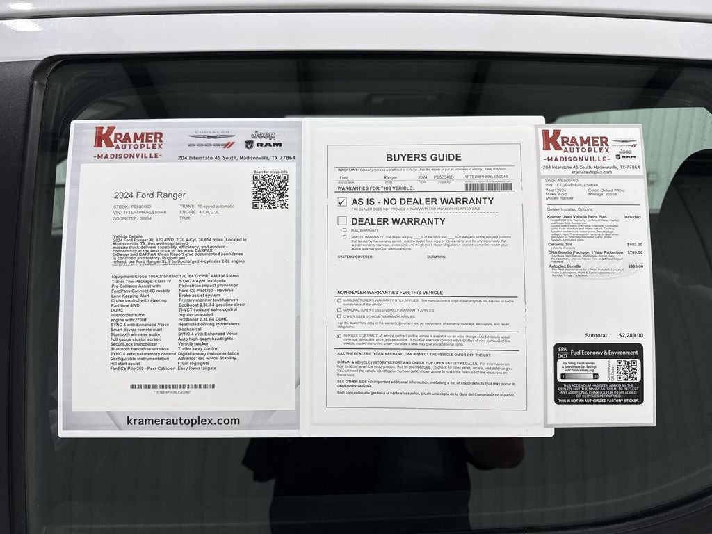 We're offering the best price on this 2024 Ford Ranger XL, providing unmatched value for a late-model truck with low mileage and a pristine CARFAX. Whether you need a reliable work truck or a versatile weekend vehicle, this Ford Ranger delivers the capability and connectivity you want. Located in Madisonville, TX — stop by for a test drive and see why this Ford Ranger is the smart choice for performance, value, and peace of mind.