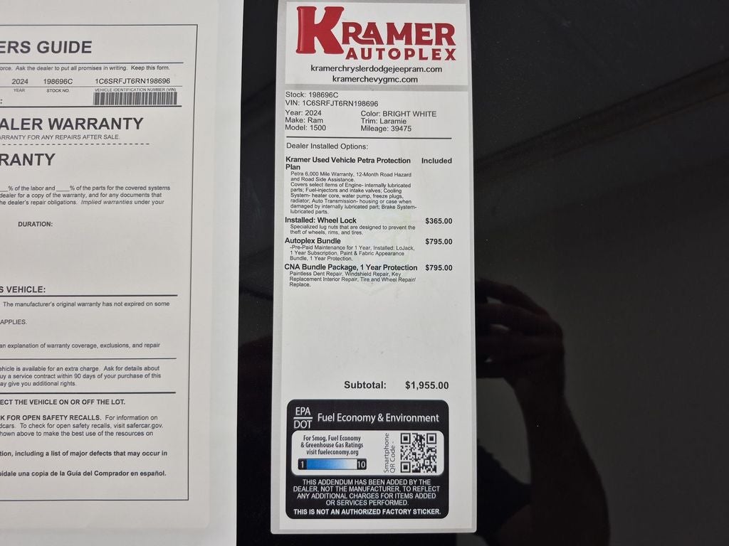 The Ram 1500 features a hands-free Bluetooth® phone system. Good News! This certified CARFAX 1-owner vehicle has only had one owner before you. Start this Ram 1500 from inside with remote start. It comes equipped with Android Auto for seamless smartphone integration on the road. You'll never again be lost in a crowded city or a country region with the navigation system on this model. Protect this unit from unwanted accidents with a cutting edge backup camera system. This vehicle offers Automatic Climate Control for personalized comfort. Keep your hands warm all winter with a heated steering wheel in the Ram 1500 . The leather seats in this Ram 1500 are a must for buyers looking for comfort, durability, and style. The vehicle has a clean CARFAX vehicle history report. Apple CarPlay: Seamless smartphone integration for this 1/2 ton pickup - stay connected and entertained on the go! This 2024 Ram 1500 's Forward Collision Warning system alerts the driver to potential front-end collisions, enhancing safety.