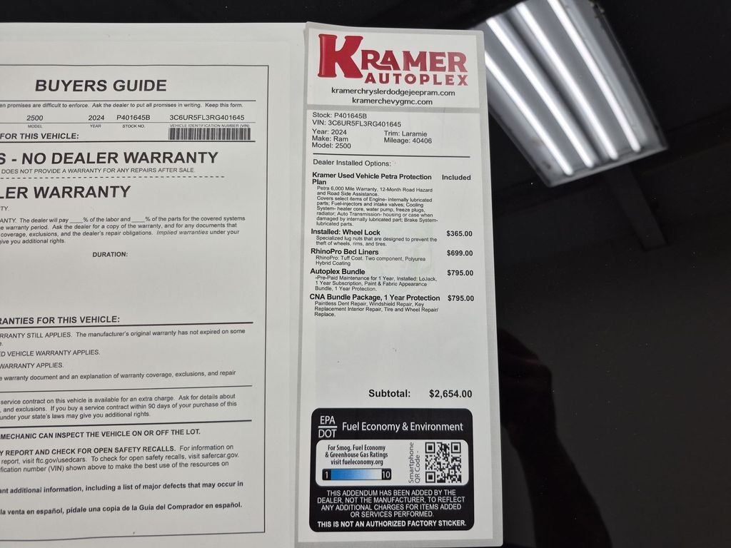 Our dealership has already run the CARFAX report and it is clean. A clean CARFAX is a great asset for resale value in the future. This 2024 Ram 2500 has automated speed control that adjusts to maintain a safe following distance, enhancing highway driving convenience. The rear parking assist technology on this model will put you at ease when reversing. The system alerts you as you get closer to an obstruction. Never get into a cold vehicle again with the remote start feature on this vehicle. Apple CarPlay: Seamless smartphone integration for this 3/4 ton pickup - stay connected and entertained on the go! An off-road package is installed on this unit so you are ready for your four-wheeling best. It's Forward Collision Warning system alerts the driver to potential front-end collisions, enhancing safety. Good News! This certified CARFAX 1-owner vehicle has only had one owner before you. with XM/Sirus Satellite Radio you are no longer restricted by poor quality local radio stations while driving this unit. Anywhere on the planet, you will have hundreds of digital stations to choose from.