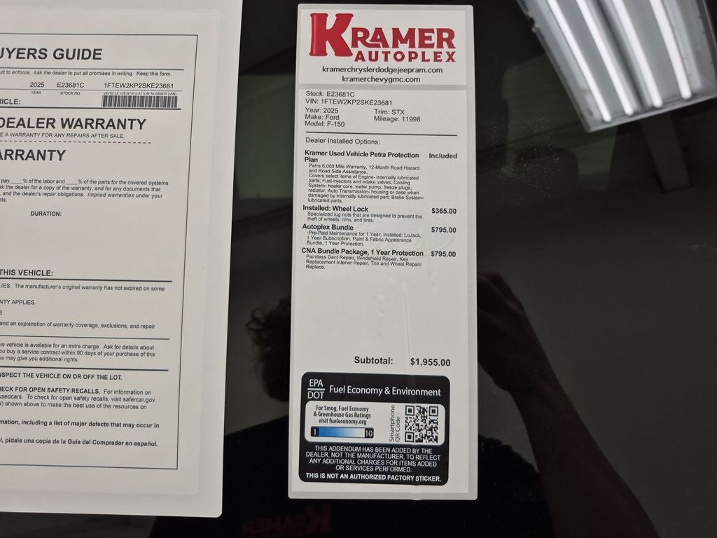 2025 Ford F-150 STX — Low-Mileage Power and Value in Livingston, TX Ready to work and built to impress, this 2025 Ford F-150 STX combines rugged capability with modern convenience. Powered by a responsive 2.7L V6 gasoline engine and rear-wheel drive, it delivers confident towing and smooth day-to-day performance. With only 11,998 miles, this Ford F-150 offers the benefits of a nearly new truck without the new-truck price — low mileage and exceptional value. Step inside to find technology designed for today's drivers: Apple CarPlay and Android Auto keep your apps and navigation at your fingertips, while Hands-Free Bluetooth® and XM Radio provide seamless connectivity and entertainment. Safety features such as Cross-Traffic Alert add peace of mind for busy parking lots and tight maneuvers. This Ford F-150 STX is located in Livingston, TX, and represents the best price you'll find for a low-mileage, well-equipped 2025 model in the area. Whether you're hauling equipment, towing a trailer, or commuting, this truck balances capability and comfort with modern tech and safety features. Don't miss this opportunity to own a 2025 Ford F-150 STX with rare low miles and a highly competitive price in Livingston, TX. Schedule a test drive today and experience a dependable V6 truck that's ready for work or weekend adventures.