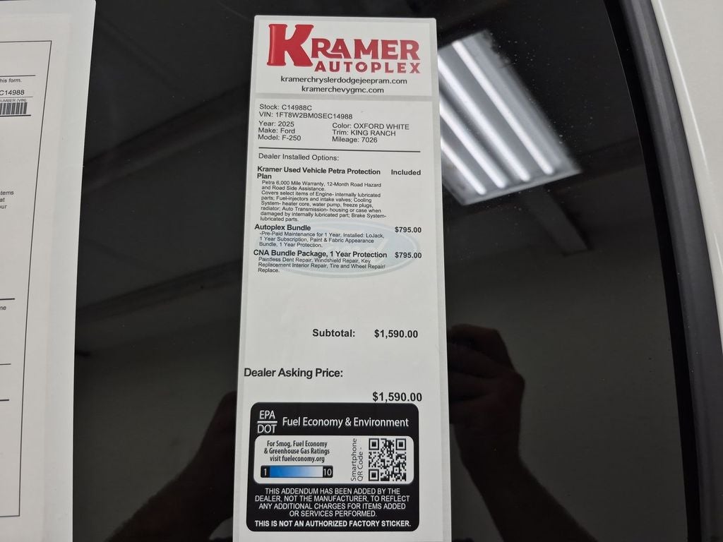 The installed navigation system will keep you on the right path. This model has a clean CARFAX vehicle history report. It has auto-adjust speed for safe following. Good News! This certified CARFAX 1-owner vehicle has only had one owner before you. The leather seats in the Ford F-250 are a must for buyers looking for comfort, durability, and style. An off-road package is equipped on the Ford F-250. Keep your hands warm all winter with a heated steering wheel in this model . Never get into a cold vehicle again with the remote start feature on this 2025 Ford F-250 Super Duty. See what's behind you with the back up camera on the Ford F-250. This model features a hands-free Bluetooth® phone system. When you encounter slick or muddy roads, you can engage the four wheel drive on the Ford F-250 and drive with confidence. Maintaining a stable interior temperature in this 2025 Ford F-250 Super Duty is easy with the climate control system.