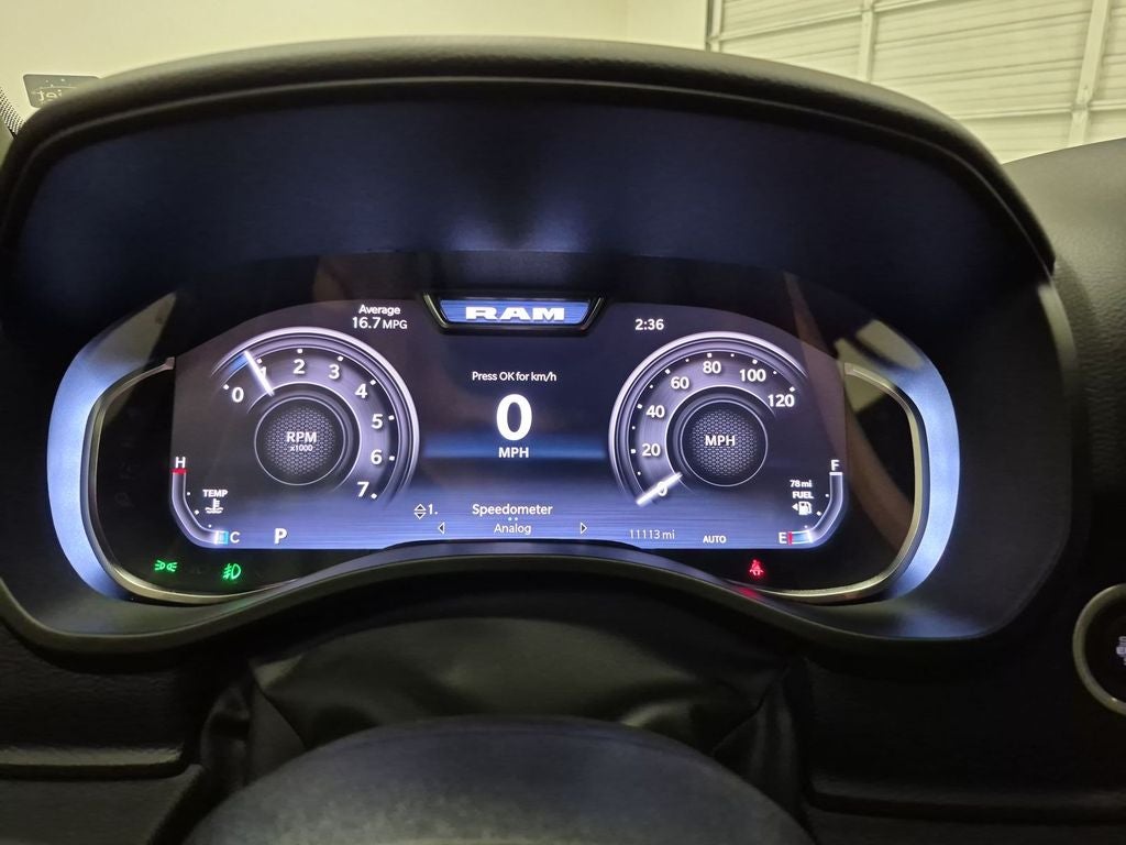Big Horn Level 2 Equipment Group: Google Android Auto; USB Host Flip; Power Adjustable Pedals; Leather Wrapped Steering Wheel; Integrated Voice Command with Bluetooth®; 12" Touchscreen Display; Glove Box Lamp; Auto Power-Folding Mirrors; 115V Auxiliary Rear Power Outlet; Media Hub with 2 Charge Only USBs; Heated Front Seats; Security Alarm; Black Premium Power Mirrors; Apple CarPlay; Premium Overhead Console; 9 Amplified Speakers with Subwoofer; Wireless Charging Pad; Remote Tailgate Release; 115V Auxiliary Power Outlet; LED Dome Lamp with On/off Switch; Universal Garage Door Opener; 2nd Row in Floor Storage Bins; Sun Visors with Illuminated Vanity Mirrors; LED Footwell Lighting; Power 2-Way Driver Lumbar Adjust; Rear Window Defroster; Rear View Auto Dim Mirror; Rear Power Sliding Window; Connectivity - US/Canada; GPS Navigation; 4G LTE Wi-Fi Hot Spot; GPS Antenna Input; Overhead LED Lamps; Exterior Mirrors with Heating Element; Auto Dim Exterior Driver Mirror; SiriusXM with 360L; Connected Travel and Traffic Services; Heated Steering Wheel; Black Exterior Mirrors; Configurable Drive Mode; 400W Inverter; HD Radio; Uconnect 5 Navigation with 12.0" Display Radio; Exterior Mirrors with Supplemental Signals; Steering Wheel Mounted Audio Controls; Exterior Mirrors Courtesy Lamps; Air Conditioning ATC with Dual Zone Control; Cluster 7.0" TFT Color Display; Power Adjust 8-Way Driver Seat; Convex Wide-Angle Exterior Mirror Insert. Quick Order Package 21R Lone Star: Lone Star Badge. Quick Order Package 23R Lone Star: Lone Star Badge. 20" X 9" Aluminum Chrome Clad Wheels. 9 Amplified Speakers with Subwoofer. Deluxe Cloth Bucket Seats. Anti-Spin Differential Rear Axle. Forged Blue Metallic. Cluster 12" TFT Color Display. MOPAR Front and Rear Rubber Floor Mats. 3.55 Rear Axle Ratio. **Equipment listed is based on original vehicle build and subject to change. Please confirm the accuracy of the included equipment by calling the dealer prior to purchase.**